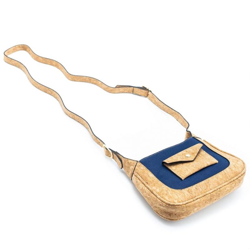 Moderná malá korková kabelka s dvoma rôzne dlhými popruhmi.
