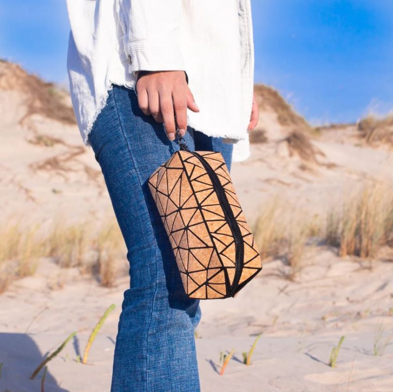 Korková taštička vhodná na uloženie kozmetiky alebo iných drobností.