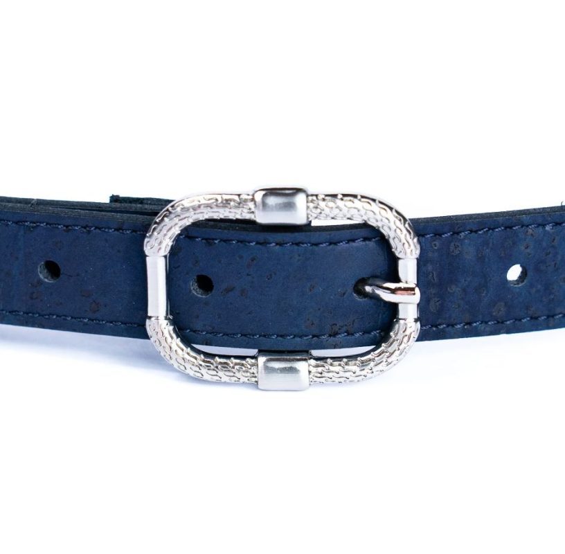 Elegantný dámsky korkový opasok s ozdobnou striebornou sponou.