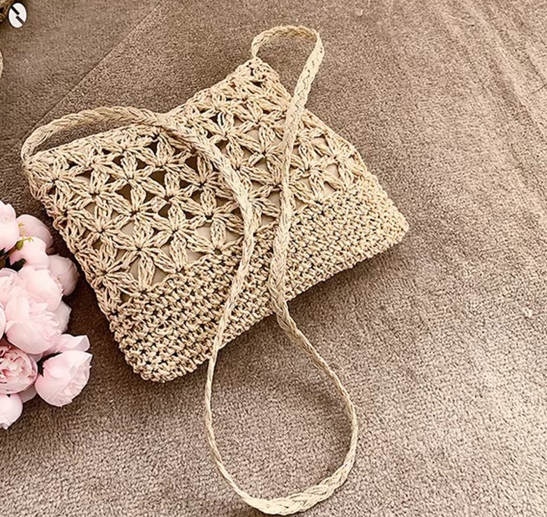 Dámska kabelka cez rameno z papierovej slamy spája štýl a praktickosť.